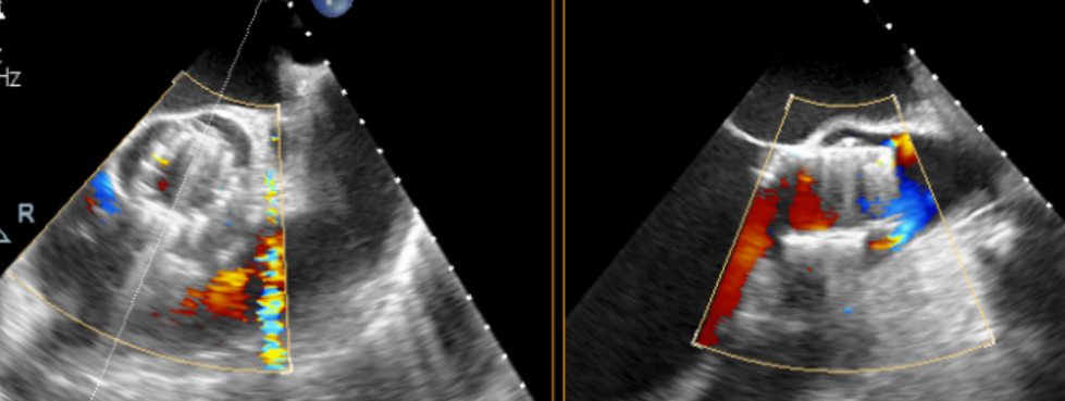 该患者心脏结构对于手术存在一定挑战,主要在于患者为主动脉TYPE0型二叶瓣,左右冠同窦,瓣窦部扩张,窦部最大径线42.7mm,最终手术团队根据患者解剖结构,将两枚夹持件放入同一窦内,第三枚夹持件放置在无窦内。此外,患者同种异体原位肝移植术后2年,长期服用抗排斥药物,行传统体外循环下的心脏手术风险较高。