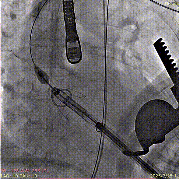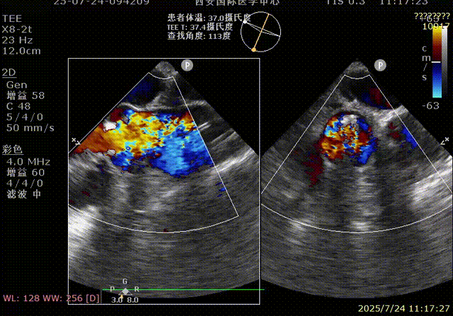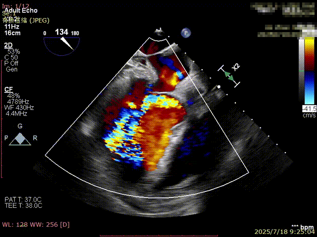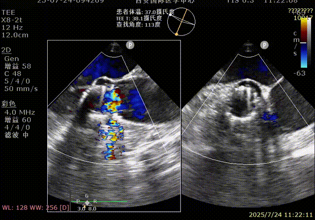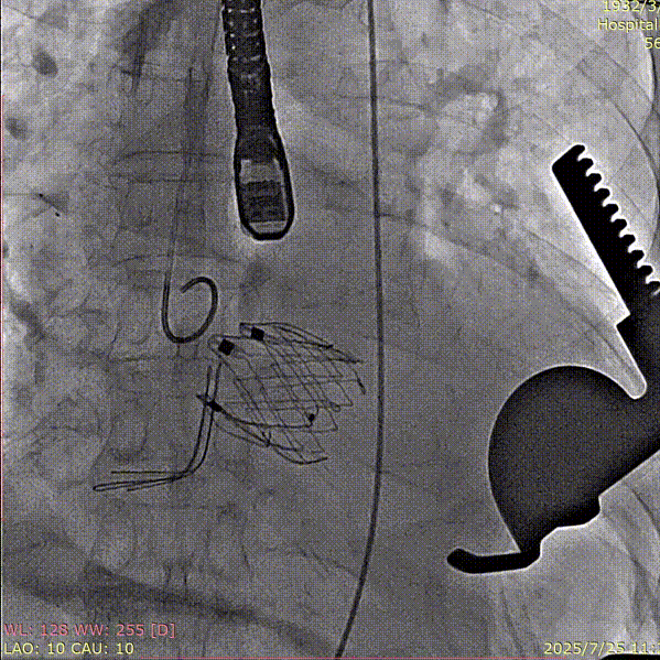 手术过程顺利。术中通过右窦居中造影、定位件入窦造影及释放后功能确认等关键步骤,确保瓣膜锚定准确。器械时间约10分钟。术中超声检查未见瓣周漏,瓣膜位置及功能评估良好,整个过程衔接紧密,无术中并发事件发生。术后即刻超声复查提示人工生物瓣启闭良好,平均跨瓣压差为6mmHg,血流速度正常。患者恢复情况稳定,心功能显著改善。