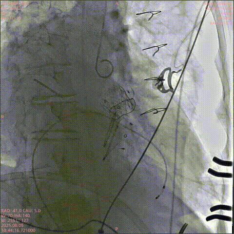 本次手术实现了多重心血管疾病的同期微创治疗。在主动脉瓣生物瓣衰败后的再次经导管主动脉瓣植入术(Redo-TAVI)中,确保第二个植入瓣膜具有充足的瓣口面积和较低的跨瓣压差是关键目标;团队选用直筒型瓣膜,相比收腰设计显著提升了有效开口面积,为患者带来更大血流动力学获益。面对二尖瓣生物瓣衰败常伴左室流出道梗阻风险的挑战,团队通过精准评估,采用整体更短且可全程回收的自膨瓣,为二尖瓣再手术患者开辟了更安全可行的新路径。