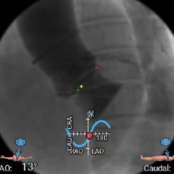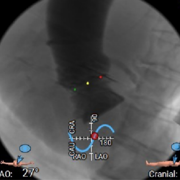 术中造影角度:右窦中心位 LAO 27°,CRA 9°。