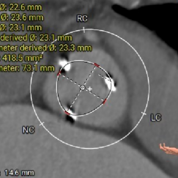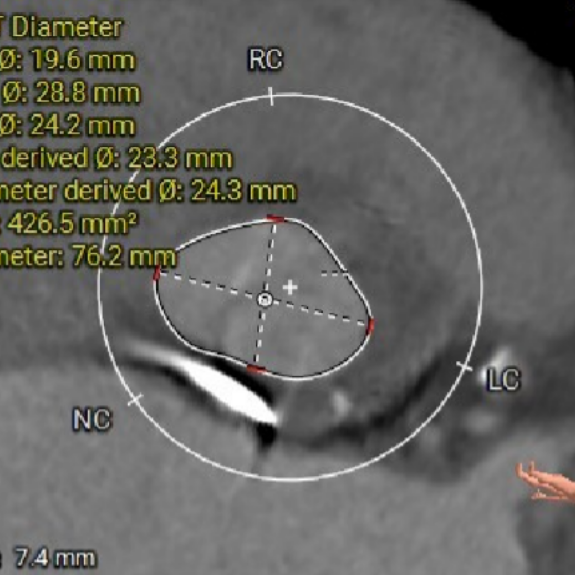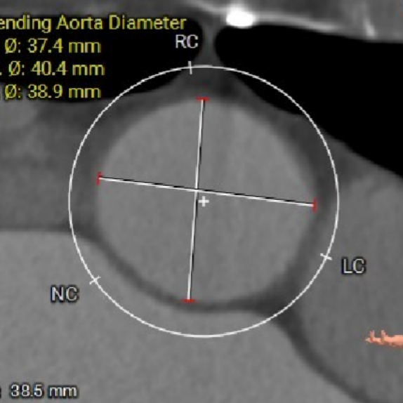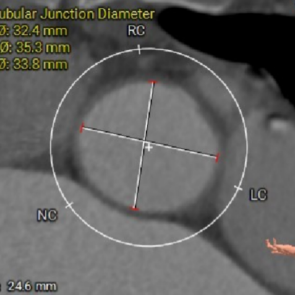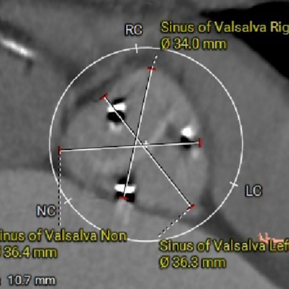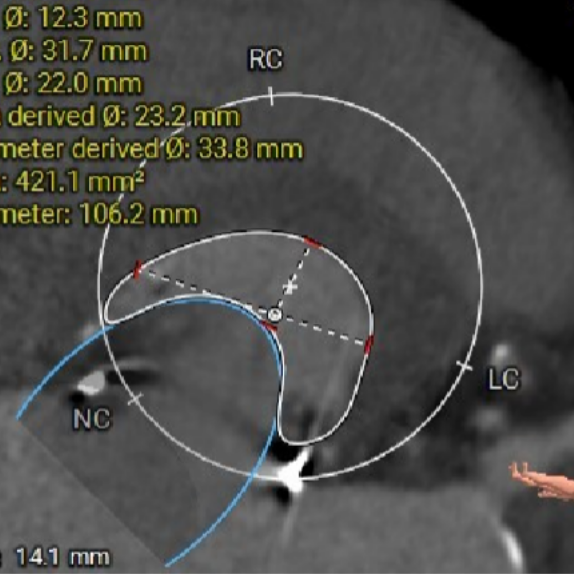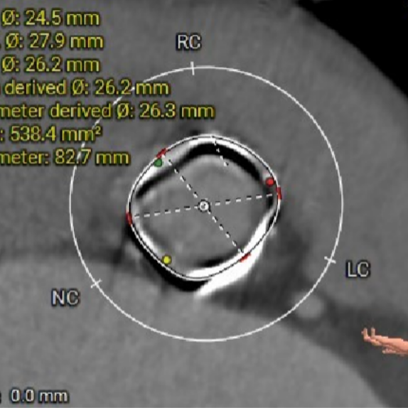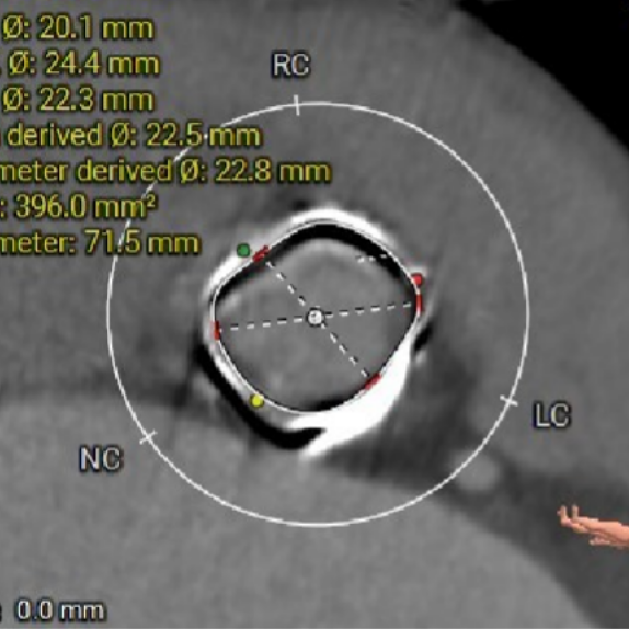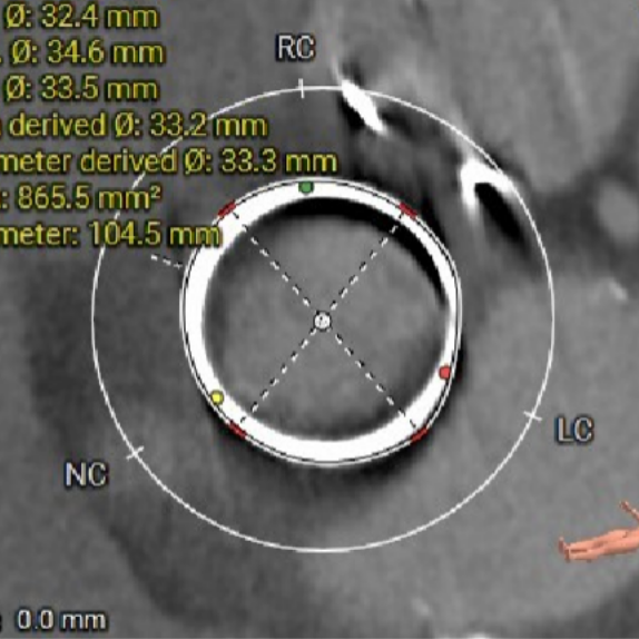 冠脉风险:LCA:8.0mm,RCA:11.4mm;外科瓣术后,SOV:34.0*36.3*36.4mm,STJ:33.8mm,冠脉堵塞风险低;