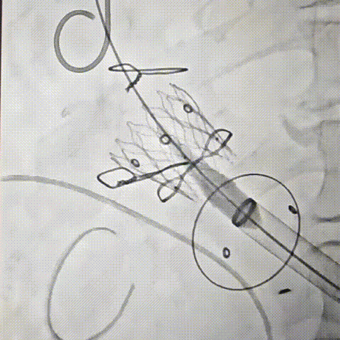 该病例同时合并腹主动脉夹层,团队同期成功实施“腹主动脉夹层腔内隔绝术”,通过微创方式置入覆膜支架,有效隔绝夹层破口、重建主动脉真腔,避免了传统开放手术的巨大创伤。对于此类主动脉瓣与二尖瓣双瓣衰败合并主动脉夹层的高危患者,二次开胸手术风险极高,而徐平、林明山教授团队凭借ScienCrown瓣膜系统的全可回收与短瓣架特性,结合经心尖途径,实现了心内双瓣膜置换与主动脉疾病介入治疗的一站式整合。为复杂心血管疾病患者提供了更具安全性、有效性和微创性的治疗新策略。