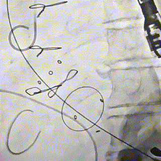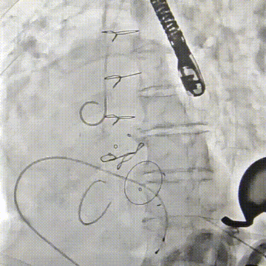 泥鳅导丝配合多功能导管跨二尖瓣,置入加硬导丝建立通路