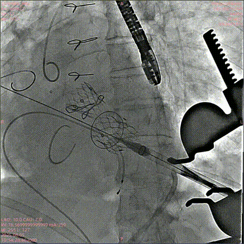 部分回收后,调整瓣膜深度重新释放,瓣膜位置良好