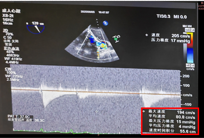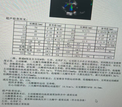 三尖瓣修复术后,重度肺动脉高压并三尖瓣中-重度反流(符合危急值);