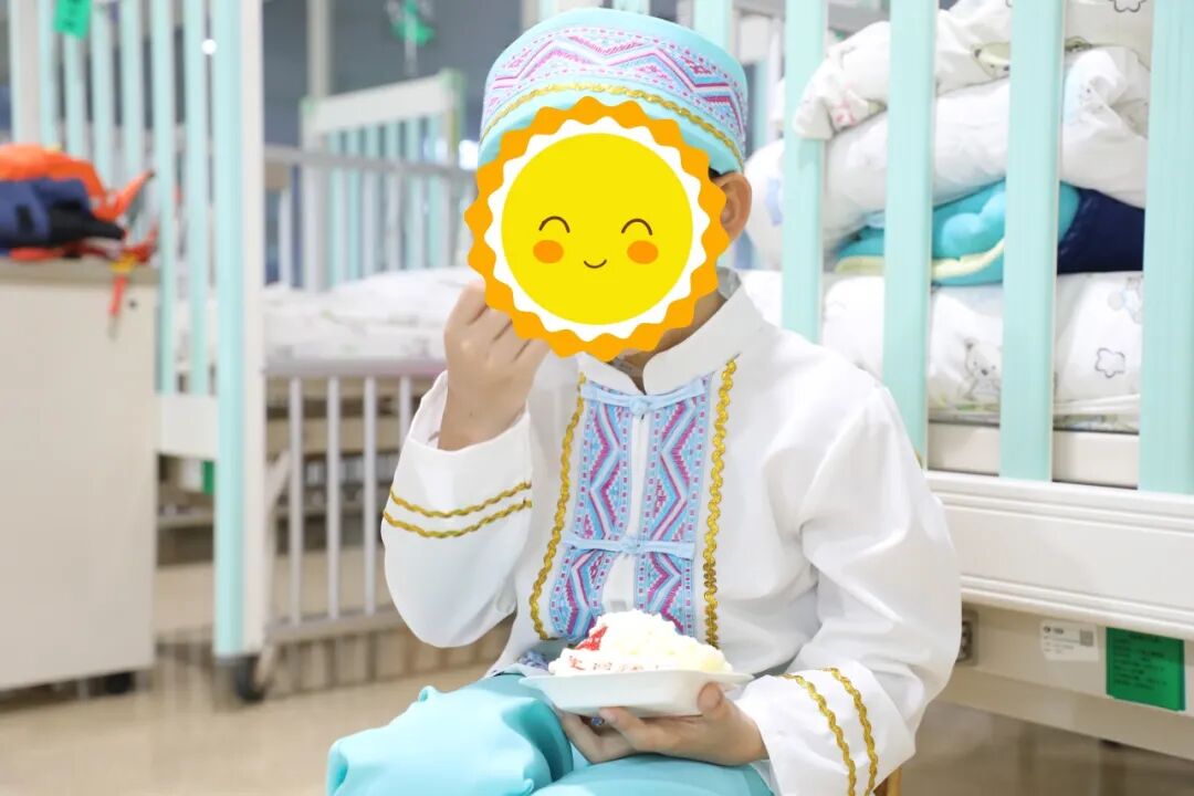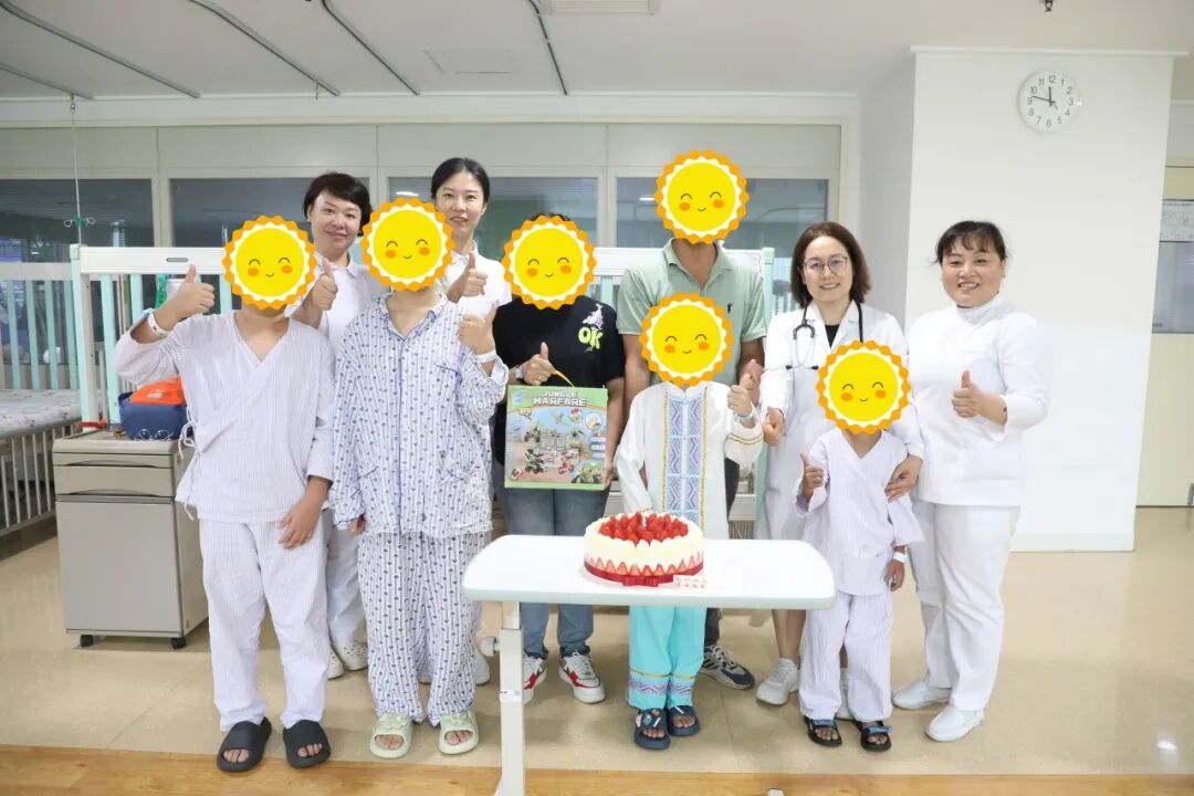 术后转天,成成便从ICU顺利转到普通病房。康复期间,细心的医护人员发现,术后第2天,8月15日正是成成的8岁生日。医护人员特地准备了蛋糕和京族的民族服饰作为礼物。