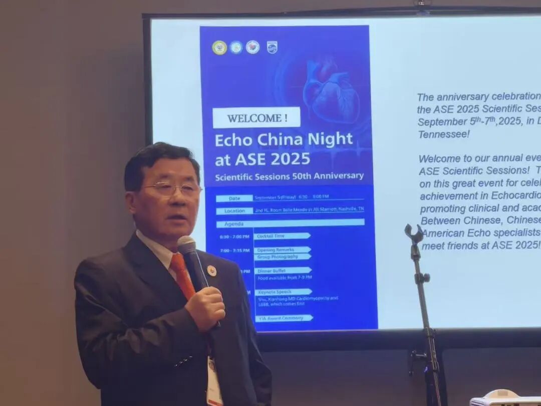 张运院士在ASE 50周年庆祝大会上代表CSE发表贺辞。他指出,在过去 50 年里,ASE已成为国际影响力最大的心血管超声学术组织,先后制定了100余项心血管超声临床应用指南规范和专家共识,建立了一系列青年医师培训和教育项目,创办了国际权威期刊Journal of American Society of Echocardiology,领导了涉及全球五大洲的WASE多中心临床研究,显著促进了心血管超声在全世界的广泛应用,践行了推动心血管健康的医学使命。张运院士对ASE 50年来的卓越成就表示祝贺并祝愿CSE和ASE的合作不断深化。