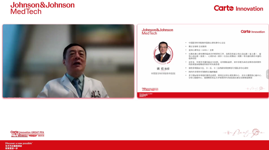 同为直播周开场致辞的中国医学科学院阜外医院姚焰教授表示:在近30年临床医学中,心律失常领域是最重大的突破学科,开创了通过微创技术基本治愈或接近治愈大部分心律失常疾病的局面。强生公司的技术和理念也在这一时期占据绝对主导地位,既造福了广大患者,也成就了众多医生。当前进入房颤治疗新时代,日本75%的导管消融手术已针对房颤患者,我国未来也将走向这一趋势。在技术层面,我们正经历从射频消融向脉冲消融的转变。根据阜外医院的日常使用经验,强生在脉冲消融产品的最大优势在于平稳过渡:沿用现有建模技术、三维标测、导航系统,仅需更换消融环状大头(即VARIPULSE导管)并增加相关线圈即可。产品学习曲线平缓,适应期短,实际效果良好。希望通过本次会议分享经验,助力各位同道更好使用该产品,共同取得优异临床成果。