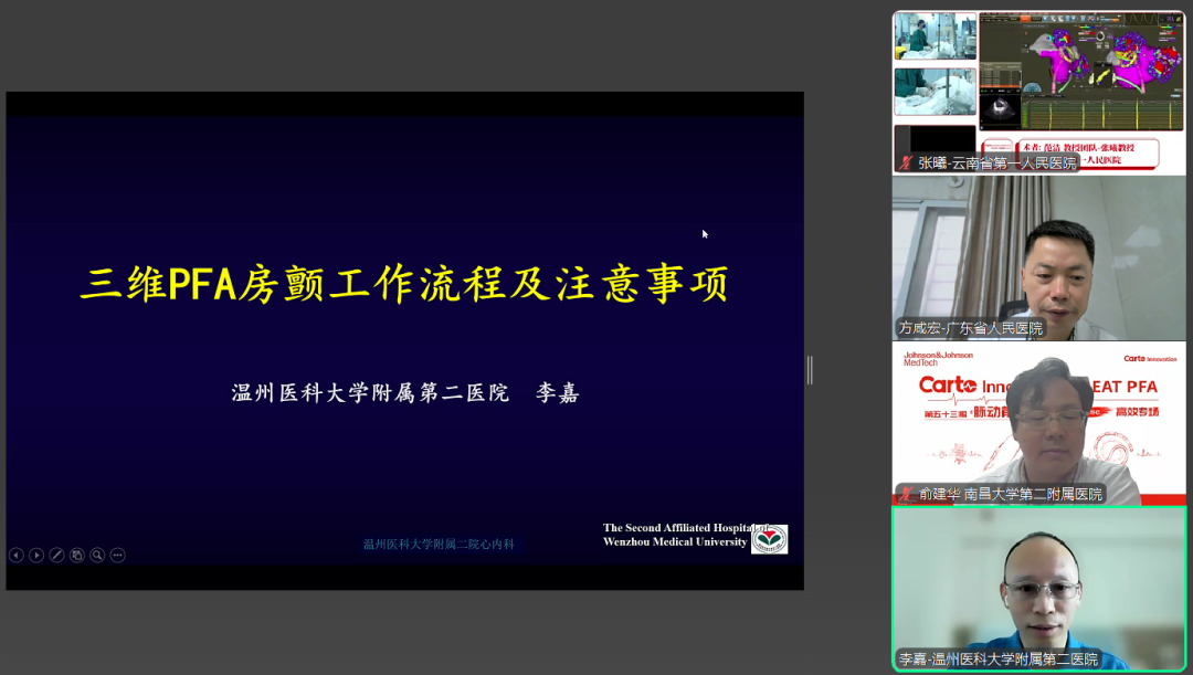 在直播手术之外,8位国内顶尖专家围绕PFA消融带来了多场学术讲座。内容涵盖脉冲消融的基本原理、高效绿色的工作流程,引导大家回归PFA技术本质,从原理层面理性分析脉冲消融技术的优势与局限,进而更好地指导其在临床实践中的规范应用。