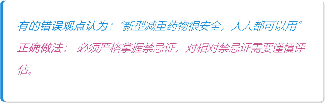 正确做法: 所有减重药物都有潜在不良反应,需要密切监测和管理。特别是NuSH受体激动剂的胃肠道反应、甲状腺C细胞肿瘤风险、胰腺炎风险等都需要关注。