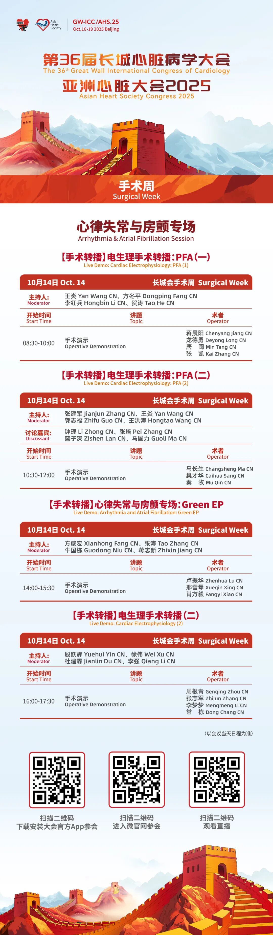 10月13日-16日,第36届长城心脏病学大会精心策划了手术周活动,届时,一系列精心挑选的手术案例将通过线上直播呈现,为与会者提供一个直观学习和交流的平台,能够从每一个细节中汲取知识,从而在医疗实践中取得突破和进步。