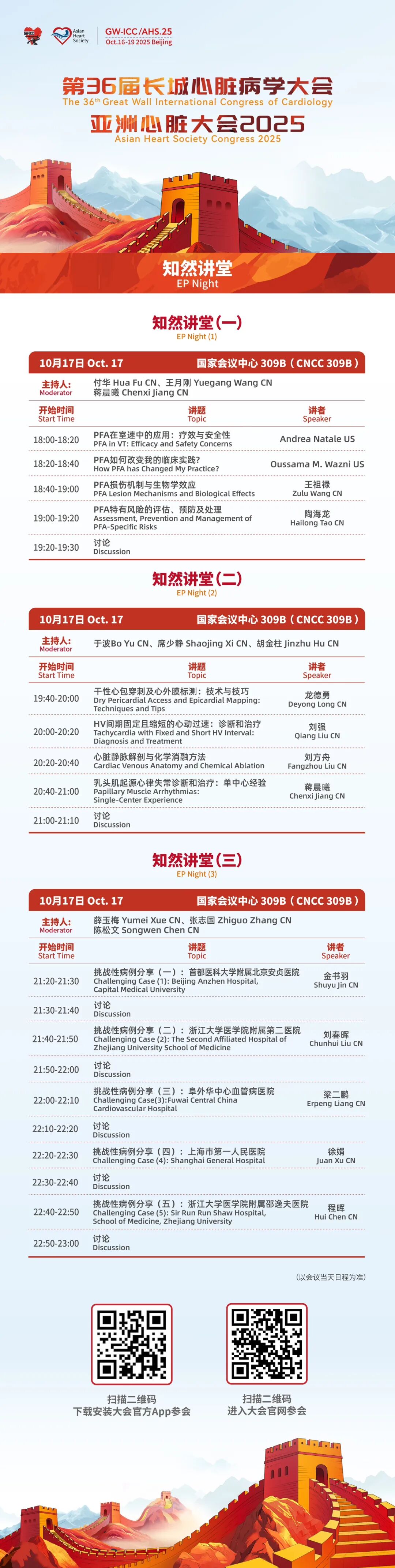 2025年10月17日,由第36届长城心脏病学大会暨亚洲心脏大会2025(GW-ICC/AHS.25)重磅开设的《知然讲堂》将在国家会议中心309B隆重举行。本次知然讲堂干货满满,将全程燃亮整个EP之夜(18:00至23:00)!