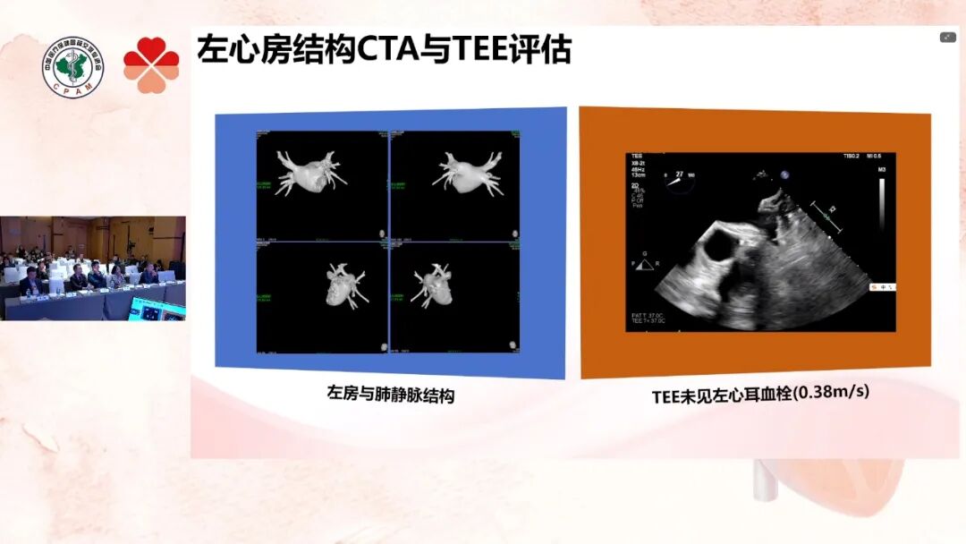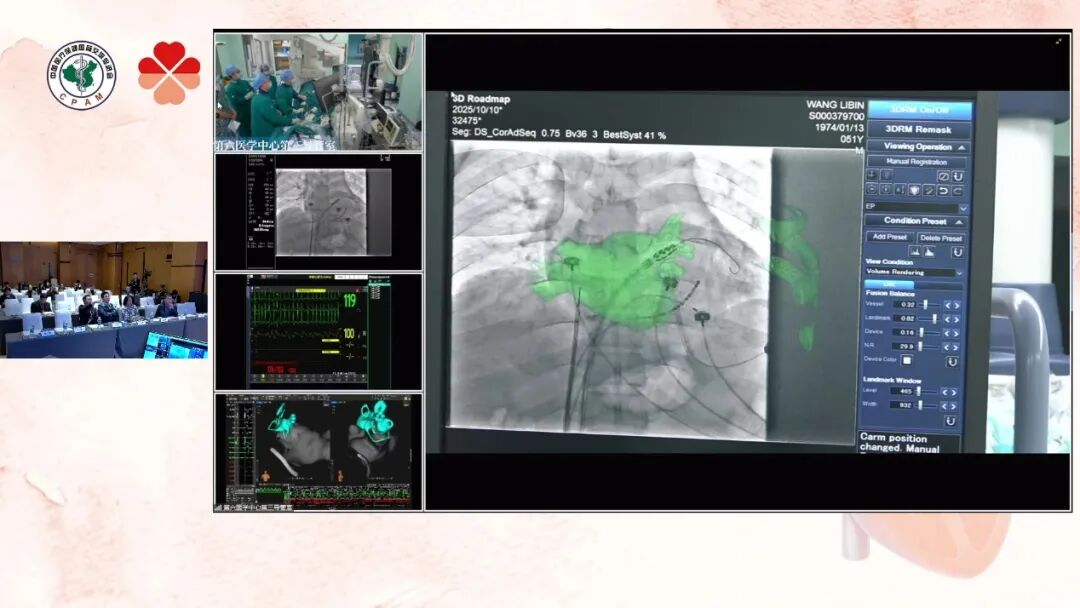 最后,中国人民解放军总医院黄亚教授和许强教授团队带来了一例零射线房颤射频消融术。患者为43岁男性,主诉间断胸闷、气短两年余,既往有陈旧性脑梗病史。术前心脏超声显示左房前后径41mm,EF 51%,右房45mm,诊断为持续性房颤。手术过程中,团队采用零射线技术,通过心腔内超声及三维电解剖引导精确完成房颤射频消融,既保障了手术安全,又有效减少了辐射暴露。整个操作流程清晰可控,实现了对房颤靶点的精准消融。