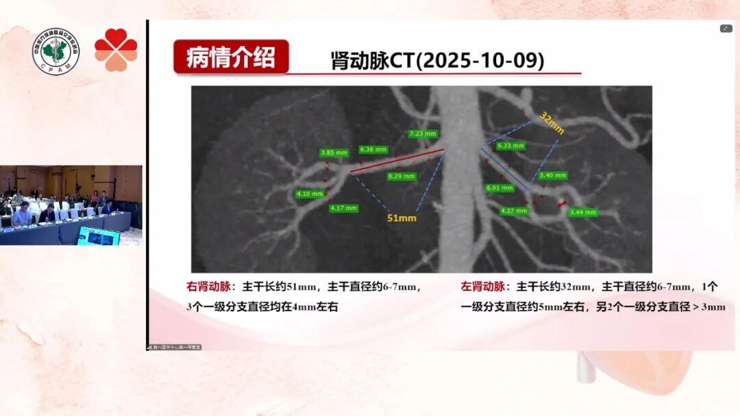 中国人民解放军总医院(301医院)郭军教授中国人民解放军总医院李屹教授团队首先完成了一例肾动脉交感神经消融手术。患者为39岁男性,主诉发现血压升高6年,既往伴有高脂血症。术前通过肾动脉CT检查,团队详细评估了左右肾动脉解剖结构,并测量血管直径,为术中消融策略制定提供精准依据。术中根据既定策略,右肾动脉主干进行消融5-6次,每次回撤5-10mm,3个一级分支各消融1次,总计约24-54点位;左肾动脉主干消融3-4次,每次回撤5-10mm,3个一级分支各消融1次,总计约18-42点位。整个操作过程在影像指导下精确、安全完成,为患者提供了针对高血压的精准介入治疗。
