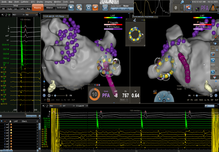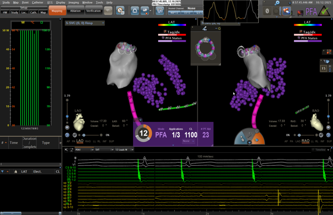 术中数据显示:此次手术平均时间控制在合理范围,肺静脉隔离高效完成,通过ICE AI智能建模、TPI贴靠指示技术实现稳定贴靠心肌及低/零射线操作,且患者术后恢复时间大幅缩短,充分体现了强生PFA技术的安全性与有效性。