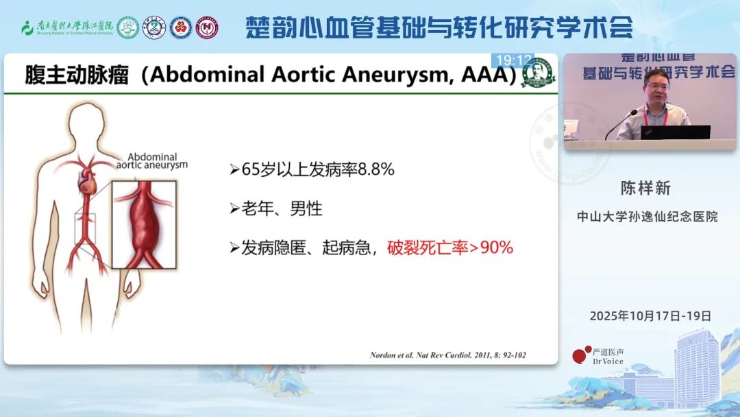 闫小响教授介绍嘌呤代谢在心肌重生过程中的关键调控作用。南方医科大学珠江医院刘灿昭教授报告PDZ蛋白在血管重塑中的分子机制。中山大学孙逸仙纪念医院陈样新教授探讨白色脂肪棕色化重塑对腹主动脉瘤形成的影响。陈静教授总结心肌梗死再灌注治疗的新策略,强调基础研究对临床改进的重要价值。