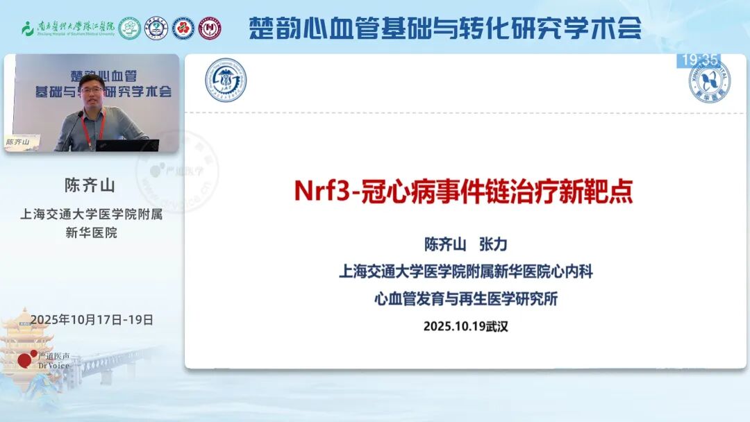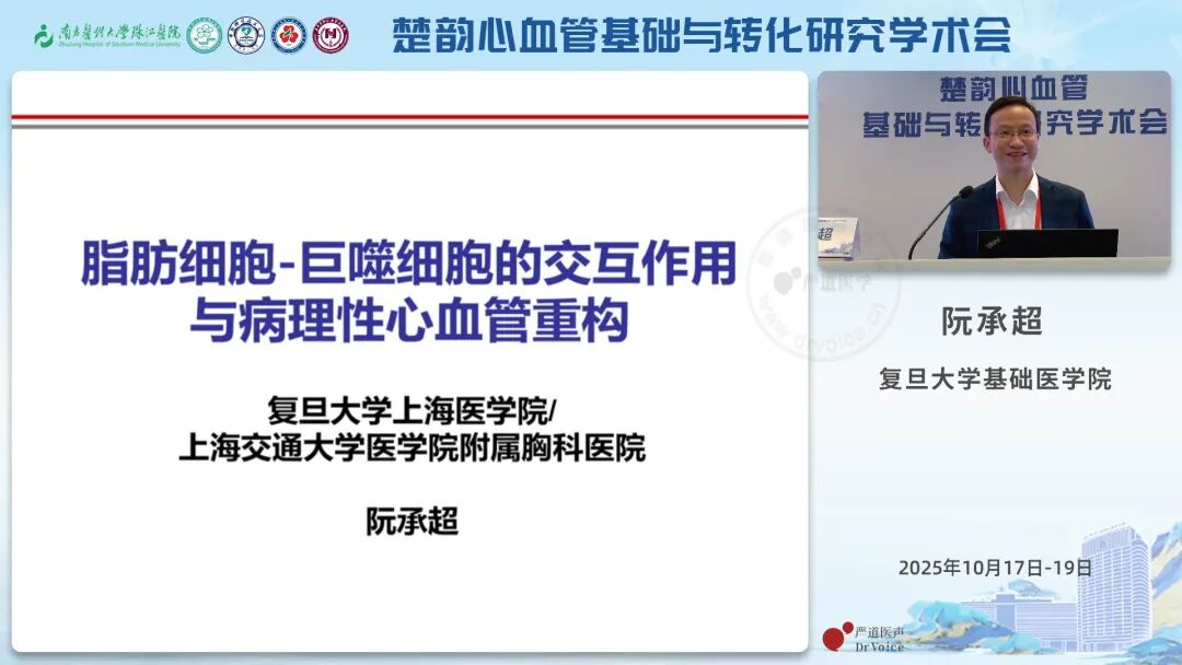 陈琪教授分享血管重构中的炎症调控机制,揭示炎症反应在血管稳态维持中的双重作用。朱毅教授报告平滑肌收缩新调节因子的发现,为血管功能研究带来新突破。区景松教授介绍PCSK9在糖脂代谢中的关键节点及其对糖尿病血管损伤的影响。潘振伟教授探讨CAND1介导的蛋白稳态与心脏疾病关联。上海交通大学医学院附属新华医院陈齐山教授分享射血分数保留型心衰(HFpEF)的新机制与潜在靶点。