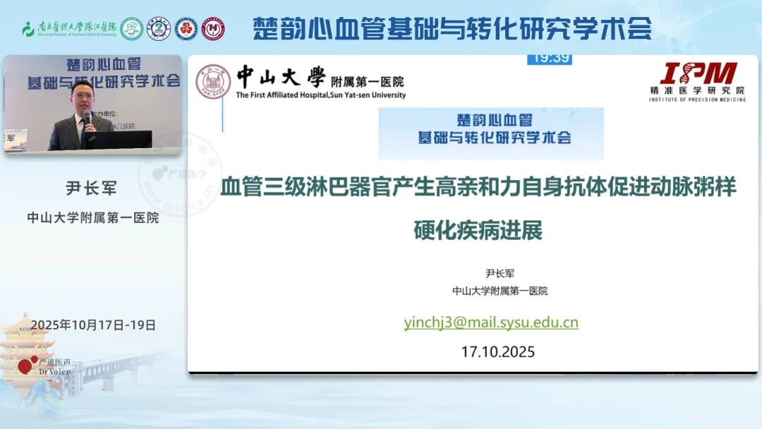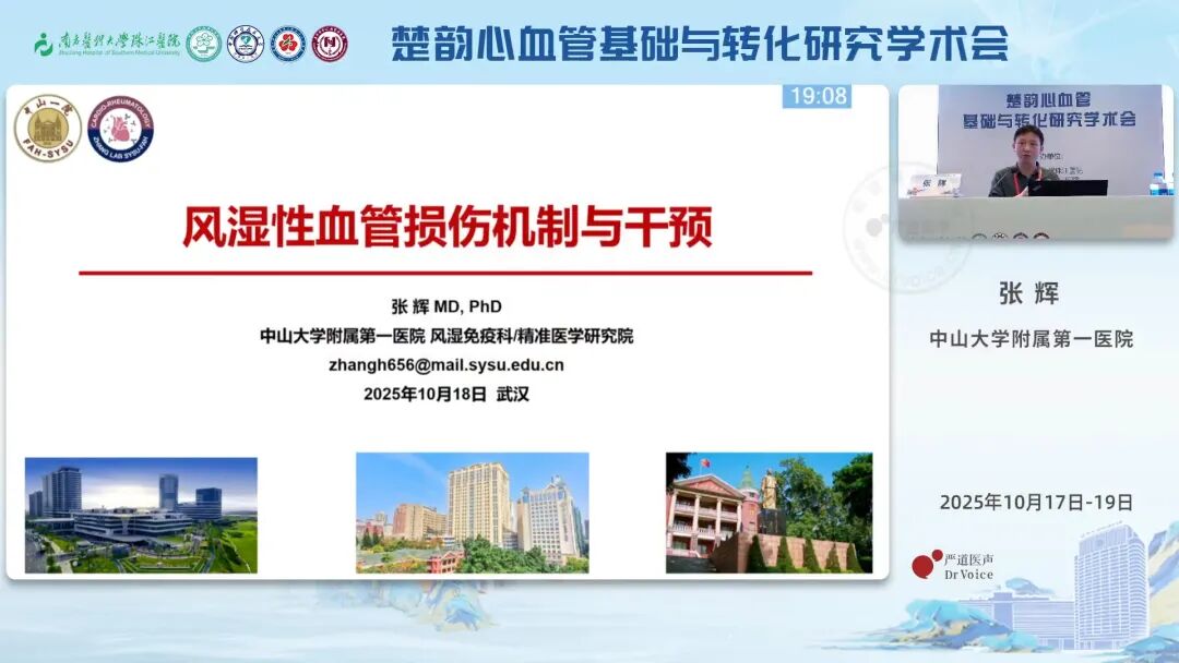 张岩教授介绍细胞外RIPK3作为损伤相关分子模式(DAMP)在心脏缺血/再灌注损伤中的关键作用。付成来教授阐述磷酸肌醇信号在心血管疾病中的调控机制。中山大学附属第一医院张辉教授分享风湿病相关血管损伤与靶向干预研究,为炎症性心血管病治疗提供新策略。中南大学湘雅三医院陆瑶教授介绍内脏脂肪分布与卒中风险之间的关联,提出代谢干预新思路。