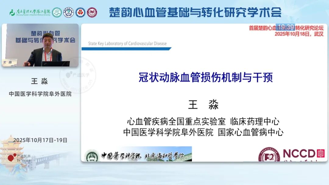 陈丰原教授介绍糖尿病患者血管内皮损伤的代谢机制。肖俊杰教授探讨运动锻炼关键靶点在防治心力衰竭中的作用。王昆教授报告MCPPIR在心肌细胞增殖调控中的新发现。中国医学科学院阜外医院王淼教授分析冠状动脉血管损伤机制及干预途径。中国科学技术大学段亚君教授总结心血管疾病中非胆固醇依赖途径的研究进展,拓展治疗思路。
