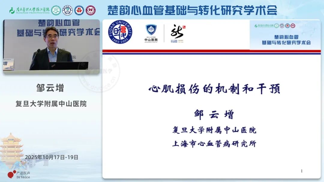 2025年10月17日至19日,由南方医科大学珠江医院、中南大学湘雅二医院、中国科学技术大学附属第一医院、武汉大学人民医院、阜外华中心血管病医院、北京医卫健康公益基金会联合主办的首届楚韵心血管基础与转化研究学术会在武汉成功召开。本次论坛秉承“基础创新,心向转化,健康中国”的理念,汇聚国内心血管领域知名专家学者,旨在搭建高水平学术交流平台,促进心血管基础与临床融合,加速临床科研成果转化,助力我国心血管事业发展。