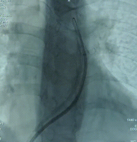 经皮肺动脉去神经术属于微创介入治疗。术前常规行右心导管检查后,交换猪尾巴导管进行肺动脉造影。