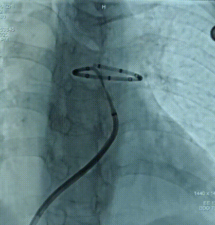 通道建立后,进入消融导管,调整合适位置后进行消融。