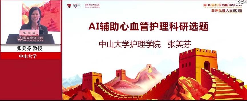 第36届长城心脏病学大会暨亚洲心脏大会2025期间,以“AI赋能护理研究”为主题的专题论坛尤为引人注目。论坛由首都医科大学附属北京安贞医院张喜维教授、北京大学第三医院童素梅教授、江苏省人民医院(南京医科大学第一附属医院)孙国珍教授,以及中国医学科学院阜外医院张辰教授共同主持。北京协和医学院梁涛教授,中山大学郑馥丹教授、崔明月教授、张美芬教授,以及北京协和医学院朴美华教授分别作重磅分享,内容涵盖临床护理争议、AI技术应用、科研选题方法与智能工具实践等多个维度,为心血管护理领域的创新发展提供了宝贵思路。