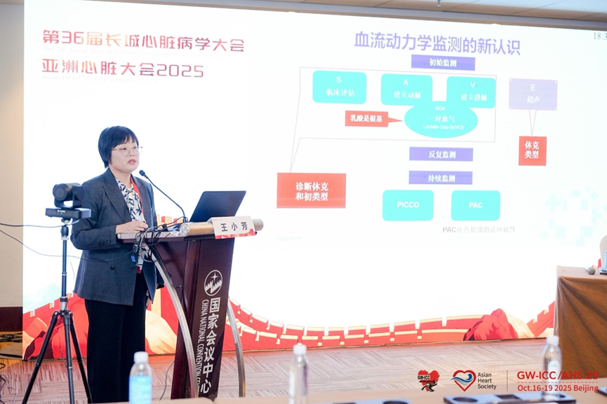 郑州大学第一附属医院的王小芳教授展示了床旁超声作为心脏重症患者“可视化听诊器”的强大价值。她强调,重症超声能够快速、无创地评估患者的血流动力学状态,实现休克类型的精准鉴别。通过评估下腔静脉直径及其呼吸变异率,可判断患者的容量状态与液体反应性;通过评估心脏结构与功能,可明确是否存在心源性、梗阻性休克;同时,通过评估左室流出道梗阻等特殊情况,能为临床治疗提供关键决策依据。王小芳教授的讲解突出了重症超声在指导液体复苏、血管活性药物应用以及循环辅助设备决策中的核心地位,是现代重症医师必备的关键技能。