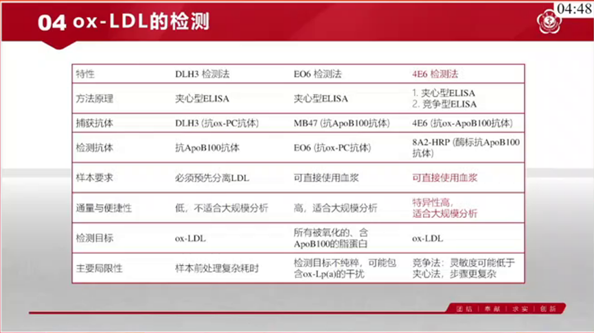 为实现Ox-LDL的精准检测,检测技术也在不断革新(图1)。基于4E6单克隆抗体的新一代检测方法,因其可直接检测血浆、特异性高、易于标准化等优势,被推荐用于临床,为大规模推广应用奠定了基础。