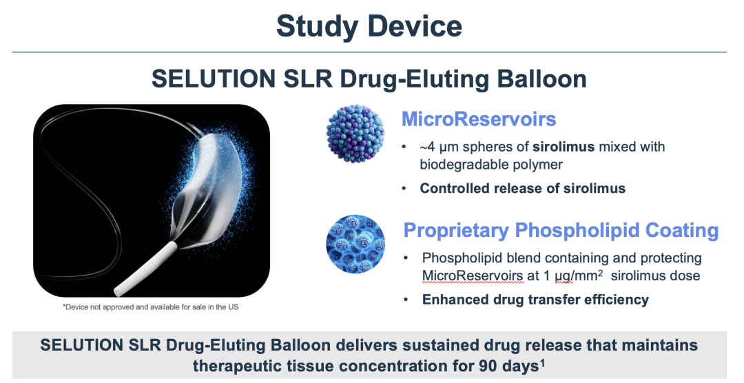 SELUTION SLR西罗莫司涂层球囊采用微储库控释技术和磷脂包被,可在血管壁维持90天药物浓度。相比传统紫杉醇DCB,其药代动力学更接近药物支架。