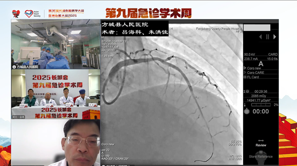 随后,沭阳中医院李涛副主任、韩江川医师团队,大庆油田总医院孙志奇主任,方城县人民医院章伟主任,大同市第三人民医院杨有东主任,邯郸市中心医院刘夏明医生、张路明医生团队,宝鸡市中心医院李小明副主任、张涛副主任团队,兰州大学第二医院蔺朋阳医师,佳木斯大学附属第一医院张洪亮主任,徐州市中心医院刘熠医师以及咸宁市中心医院李宾副主任为大家展示了多例急诊PCI手术流程,清晰的病变处理思路、默契的团队配合均为手术的成功奠定了极其坚实的基础。