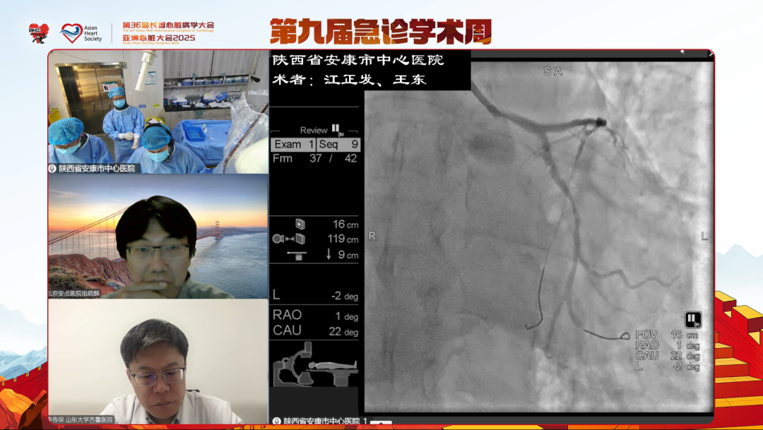 第二日的城市站直播间来到首都医科大学附属北京安贞医院与山东省立医院,首都医科大学附属北京安贞医院高海教授、赵雪东主任、金彦彦主任、祖晓麟副主任、周璨医师,山东大学齐鲁医院李传保教授,中国医学科学院阜外医院崔贺贺副主任,首都医科大学附属北京友谊医院公绪合副主任,内蒙古科技大学包头医学院第一附属医院蔺雪峰教授,山东第一医科大学附属省立医院苑海涛教授、周轶主任,山东第一医科大学附属中心医院、济南市中心医院户克庆主任,解放军九六零〇医院晋群副主任,山东中医药大学附属医院王震主任,山东省立医院张明伟医师,山东大学齐鲁第二医院王欣副主任,山东省立医院陈永副主任以及山东第一医科大学第一附属医院李晓鲁主任于线上线下与大家一同参与到手术策略的制定与指导。