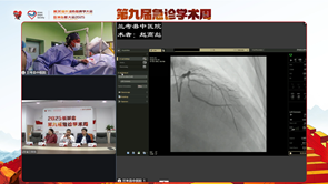 在学术交流环节中,石蓓教授以2025急性冠脉综合征管理指南更新内容为核心,从ACS标准治疗、STEMI患者再灌注策略、NSETMI-ACS患者再灌注策略、ACS患者PCI手术问题及ACS并发症管理展开了详尽梳理;德江县民族中医院王桥福副主任分享的则是一例特殊的通过自制短指引导管救治右冠瘤样扩张伴高血栓负荷患者的病例;遵义医科大学附属医院胡兴卫医师以一例IVUS指导下急性广泛前壁STEMI病例,对IVUS在急诊PCI中的应用场景进行了汇总;遵义医科大学附属医院赵然尊教授以循证为切入点,指出OCT更适用于罪犯血管不能确定、钙化病变、支架失败病变、模糊病变、非阻塞性冠状动脉心肌梗死等,而IVUS更适用于左主干病变、开口病变、SCAD、合并肾功能不全等;遵义医科大学附属医院马帅医师与兰州大学第一医院胡威医师分别分享了一例经典的药物球囊处理急性心梗病例;兰州大学第一医院张益铭医师针对高龄急性心肌梗死患者的急诊PCI处理提供了其独到见解;兰州大学第一医院苏昱润医师则以一例LAD开口闭塞合并慢血流患者的急诊PCI病例,为本日的学术专场画下了完美的句号。