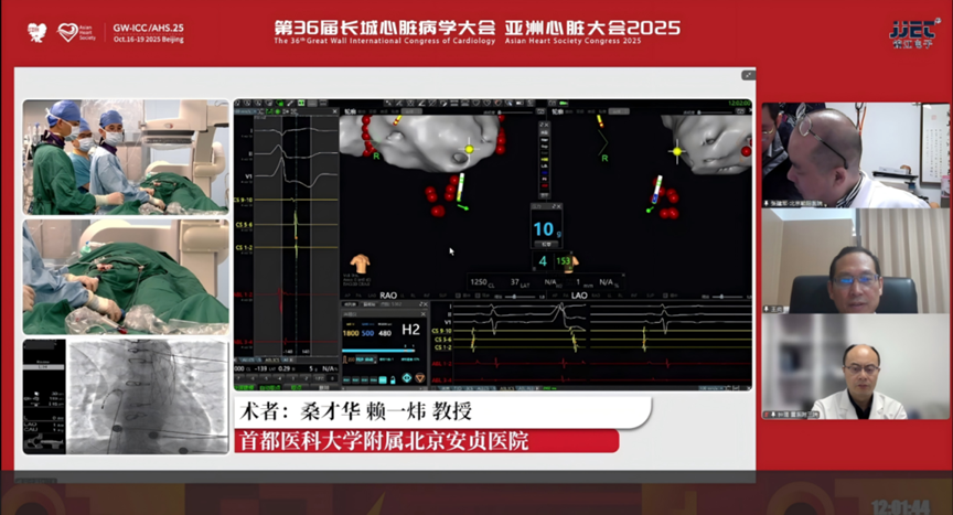 桑才华教授团队使用锦江脉冲导管展示了脉冲消融下的2C3L术式操作。桑才华教授强调了术前评估的重要性。他特别指出为降低血气胸的风险,应避免通过锁骨下进行操作,此外还介绍到使用锦江脉冲贴靠放电的功能可避免空放电。