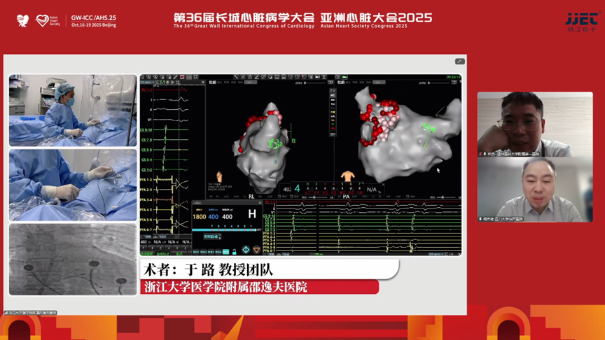于路教授演示了局麻下脉冲消融治疗阵发房颤手术。于路教授认为在房颤治疗中三维系统非常重要,因为房颤病例复杂,常合并房速、旁道等问题,若没有三维系统标测可能会遗漏或误判。同时于路教授和参会嘉宾就局麻下病人耐受性、复发病人Redo手术选择等话题进行了充分交流。