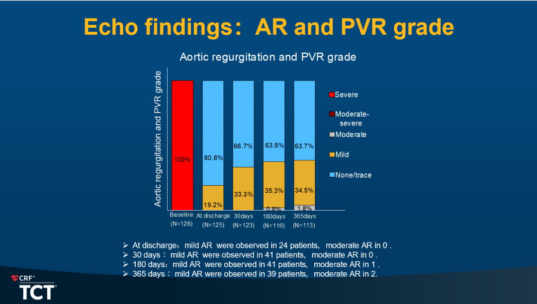 汇报结束后,主持人及参与讨论的国际同行肯定了该新器械治疗AR的高成功率以及取得的优异短期结果,并讨教了锚定件释放等器械操作技巧。潘文志教授阐述了锚定件如何释放、自动定位入窦等的操作细节,评价该器械释放过程耗时少、简单易行。同时,国际专家们就1年时部分病例存在轻度瓣周漏进行了讨论,潘文志教授分析:一方面,从心超及临床随访数据来看,轻度瓣周漏并未影响人工瓣膜血流动力学表现,以及患者左室重构和心功能的改善;另一方面,轻度瓣周漏的发生可能与选择瓣膜时,oversize ratio控制过于严格有关,试验中不仅中位oversize ratio小(5%),有20例患者(15%)甚至没有oversize(oversize ratio为0%),虽然此器械并不依靠径向支撑力、oversize ratio来固定瓣膜,追求小oversize ratio是为了减少新起搏器植入率和治疗更大瓣环的患者,但过小的oversize ratio使得人工瓣膜不能完全封住由扩张的瓣上结构带来的瓣周漏,常见于瓣叶交界联合部来源,因此人工瓣膜稳定并不意味着瓣周漏少,根据前期本中心经验,推荐的oversize ratio在5%-10%最佳。总体说来,HAVE AR trial的一年结果优异,即将商业化应用,需要更长期更大样本、与外科手术对照试验来证实经股动脉TAVR在AR治疗领域的价值。