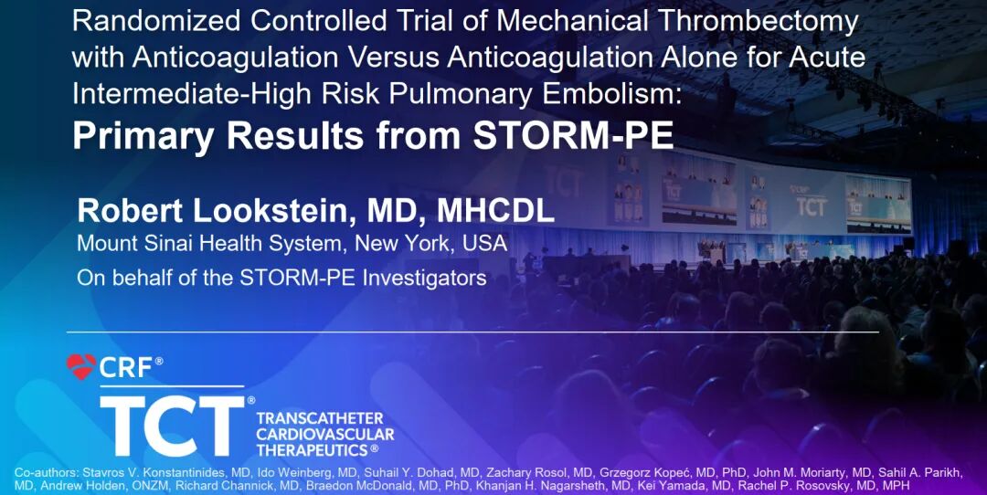 在此背景下,STORM-PE研究作为10余年来首个完成的RCT,也是全球首个聚焦机械血栓切除术(MT)联合抗凝(AC)与单独抗凝治疗直接对比的临床试验,其结果的发布为中高危PE的治疗提供了关键循证依据,填补了该领域的证据空白。