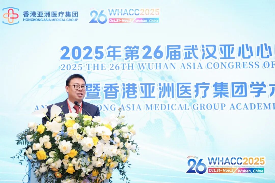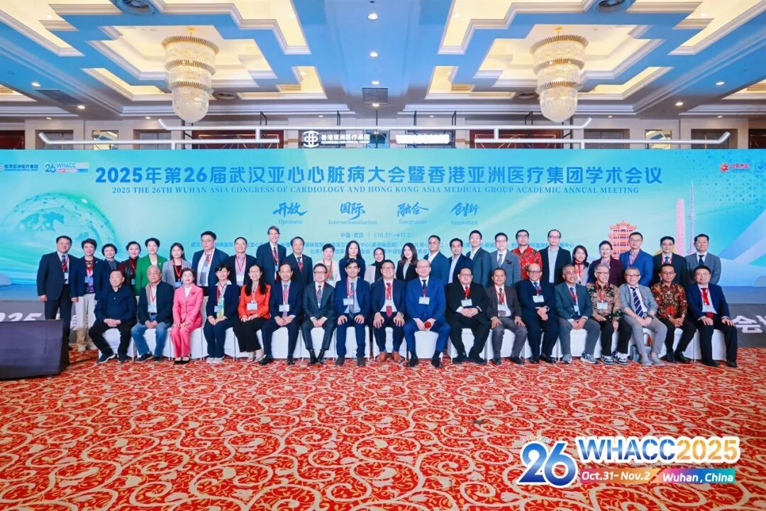 2025年11月1日,第26届武汉亚心心脏病大会暨香港亚洲医疗集团学术会议(WHACC 2025)于江城武汉隆重开幕。秉着“开放、国际、融合、创新”的精神,大会汇集国内诸多心血管病权威专家,以及美国、法国、日本、印度尼西亚等国际心血管病专家,共同探讨心血管病诊疗新进展,共享智慧成果与成功经验。本次大会开幕式通过线上平台向全球同步直播,吸引线上观看量突破10万人次,成功搭建了国际间高质量学术交流平台,书写出心血管疾病防治的新篇章。
