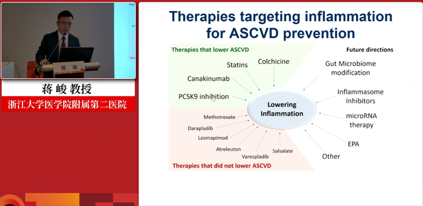 蒋教授回顾了JUPITER等重要研究,指出对于他汀治疗后超敏C反应蛋白(hs-CRP)仍持续≥2 mg/L的患者,低剂量秋水仙碱可作为二级预防的补充治疗。然而,临床应用时需仔细评估获益风险比,特别关注感染和不良反应的监测。蒋教授还比较了不同抗炎治疗策略的性价比,指出生活方式干预始终是性价比最高的基础措施。