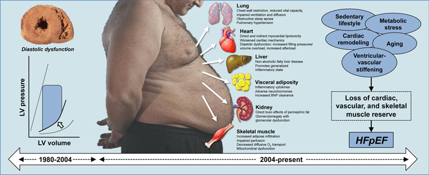 2016年,肥胖占世界成年人口的13%。在美国,HFpEF患者的平均BMI>35 kg/m²。