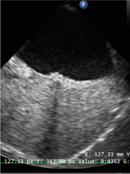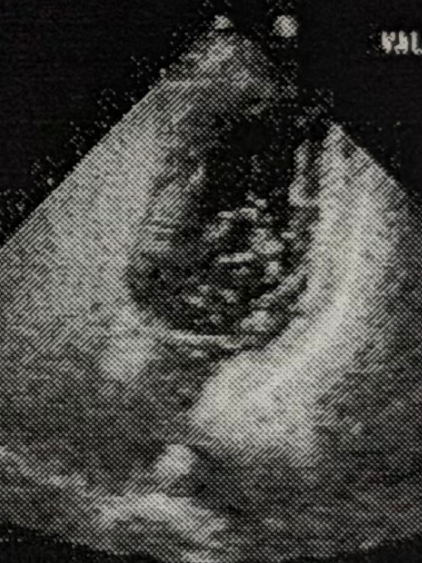经食道超声:房间隔继发隔与原发隔间可探及细小斜形分离,内径宽约1.5mm, 长约4-8mm,继发隔厚约4mm,距主动脉根部约8mm,CDFI房水平未探及确切过隔分流信号。