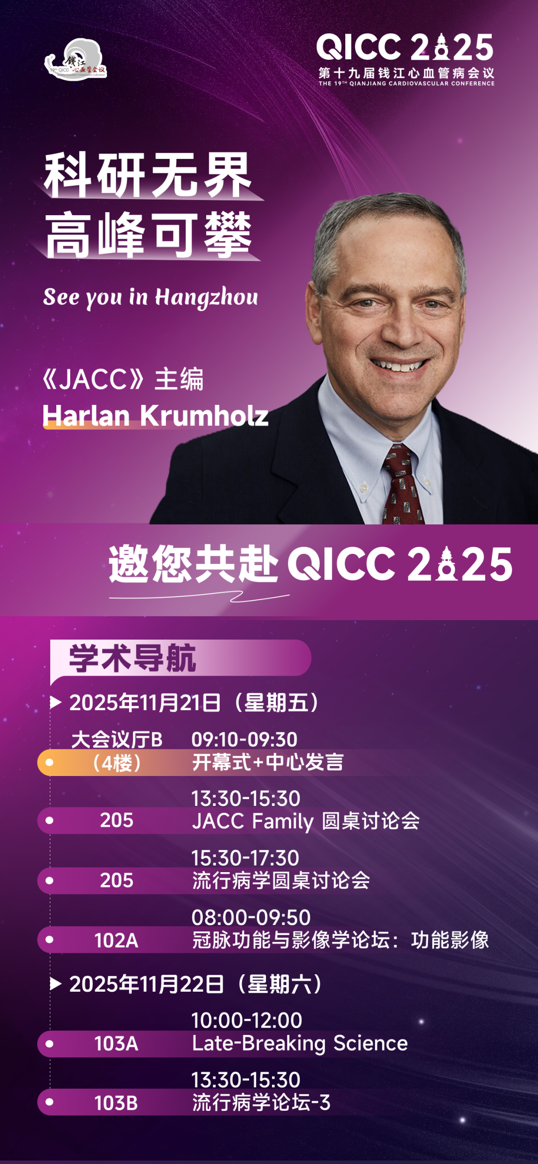 在Harlan Krumholz 教授看来,中国的科研成果早已突破国界限制,在全球范围内产生深远影响,而QICC正是展现学术热情、科研实力与友谊情谊的绝佳平台。