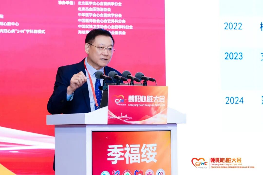 并强调,胡大一教授留下的“以患者为中心”的精神,是所有医疗工作的出发点和落脚点。她所在的康复中心,正是在胡大一教授的指导下成立的。相信未来,朝阳医院将继续发挥引领示范作用,在复杂冠心病治疗、心脏重症治疗等领域实现新突破,也期待本次大会成为交流真知、激发灵感、促进合作的平台,为我国心血管病防治事业注入新动力。最后,她借“朝阳”的另一层寓意,祝愿朝阳医院未来充满活力与光明,大会年年办出高水平、持续出彩。