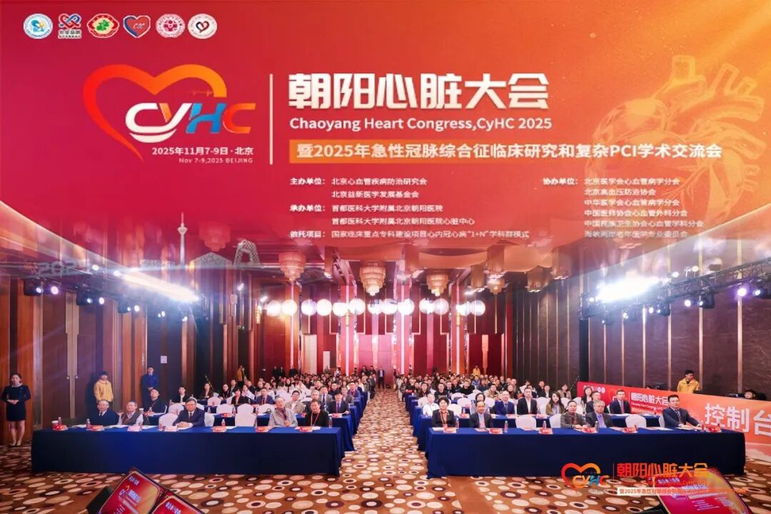 2025年11月8日,2025朝阳心脏大会(CyHC)暨2025年急性冠脉综合征临床研究和复杂PCI学术交流会在北京隆重开幕。来自全国各地的心血管领域专家同道齐聚一堂,忆峥嵘岁月、论前沿进展、绘发展蓝图,让这份植根于北京朝阳医院的医学情怀,在新时代绽放出新的光芒。