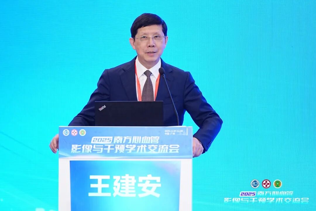 王建安教授在致辞中首先代表浙大二院及浙江省心血管病临床医学研究中心,对2025南方心血管影像与干预学术交流会的成功召开表示热烈祝贺。他向现场的专家前辈致以诚挚问候,并对大会组委会的邀请表示感谢。王建安教授深情回顾了这一学术平台十二年来的发展历程。他指出,十二年前影像与干预的关系尚不清晰,而如今二者已深度融合。这一平台不仅推动了南方医院心血管学科的发展,更顺应了全球心血管领域的趋势——即使在TCT等国际顶尖介入会议上,影像与功能学评估内容也日益增多。他强调,影像与干预的有机结合是心血管领域的重要发展方向。