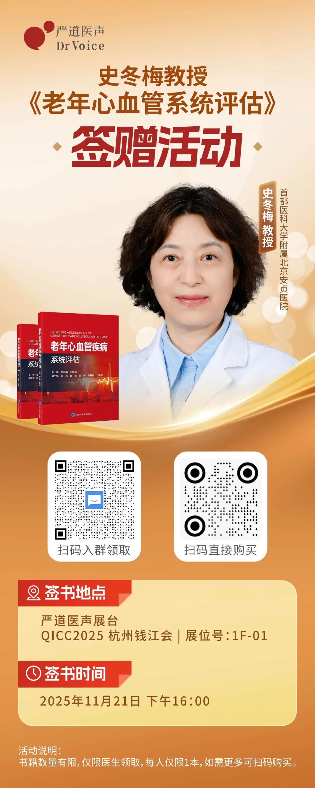 首都医科大学附属北京安贞医院心内科主任医师史冬梅教授,将带来其主编的《老年心血管疾病系统评估》亲临现场。本书涵盖老年心血管病学科特点、常用评估方法,详解多种常见老年心血管疾病的临床特点、评估策略与治疗新进展,还包含患者心理评估与管理内容,是临床医生开展老年心血管疾病诊疗工作的实用指南。