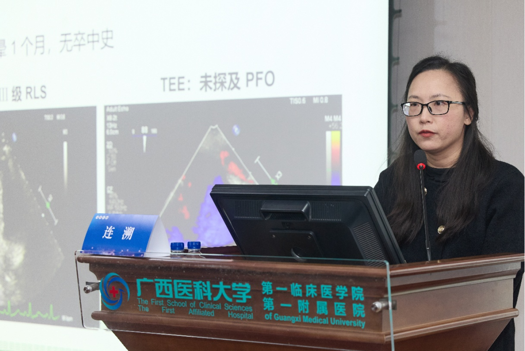 在病例分享环节,多位医师带来精彩案例。广西医科大学第一附属医院曾德才教授分享“TTE联合TEE引导下二尖瓣瓣周漏介入封堵”病例,展示多模态影像的协同价值;广西壮族自治区人民医院陈辉教授汇报了“TAVI术中经食道超声实时引导瓣中瓣植入”案例,探讨复杂介入手术的超声引导策略;广西医科大学第一附属医院覃诗耘教授介绍了“经食管超声切面下肺静脉异位引流的术前诊断和术中评价”,分享先天性心脏病诊疗经验;广西中医药大学第一附属医院连溯教授通过“PFO评估矛盾病例:右心声学造影与TEE的对比解读”,展示了不同影像技术的对比分析;广西医科大学第一附属医院黄桐桐博士就心房颤动血栓的“小众报告”进行专题汇报,探讨特殊病例的诊疗思路。