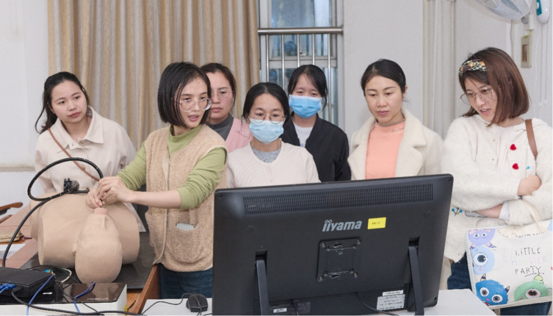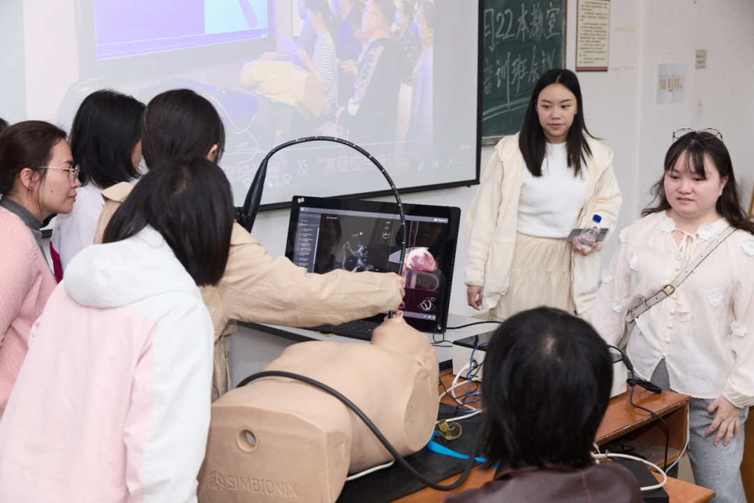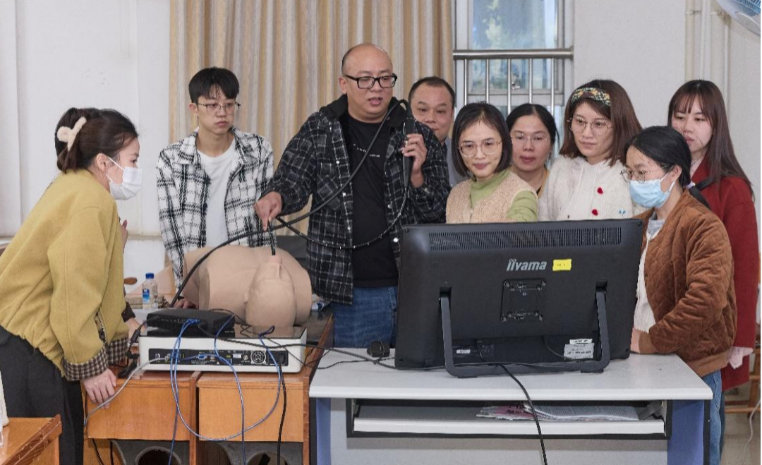 为强化实操能力,培训特别设置高仿真体模带教环节。由广西医科大学第一附属医院心超团队亲自授课。带教过程中,专家团队聚焦TEE操作规范、核心切面获取、关键指标识别等实操要点,针对临床常见操作难点进行一对一指导,现场拆解问题解决方案,帮助学员快速掌握实操技巧,切实提升临床应用能力,实现 “学用结合、学以致用” 的培训目标。