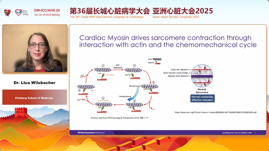 美国西北大学的Lisa Wilsbacher教授带来了小分子靶向药物在遗传性心脏病中成功应用的典范——心脏肌球蛋白抑制剂。她聚焦于肥厚型心肌病(HCM),其核心病理生理机制是肌节过度收缩。新型小分子药物Mavacamten(已上市)和Aficamten(待审批)能够直接作用于心脏肌球蛋白,通过减缓其与肌动蛋白的相互作用,减少活跃的横桥数量,从而“精准降速”,使过度收缩的心肌恢复正常。她系统回顾了EXPLORER-HCM、VALOR-HCM及SEQUOIA-HCM等关键III期临床试验。结果证实,这两款药物均能显著降低梗阻性HCM患者的左室流出道梗阻、改善运动耐量和心衰症状,甚至减少对室间隔消融/切除手术的需求。她也指出了此类药物的局限性,如对非梗阻性HCM疗效不佳,以及潜在的过度抑制心功能等安全性问题,需在严密的监测下使用。