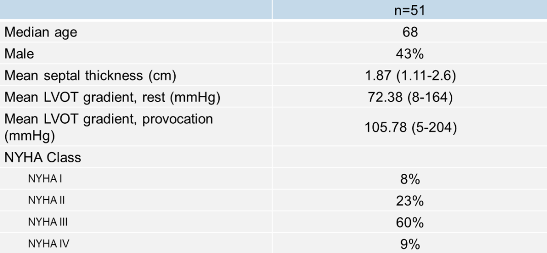 本研究为单中心、单术者回顾性队列研究,纳入了2005年至2022年期间,在该中心接受SCA治疗的51例症状性HOCM患者。